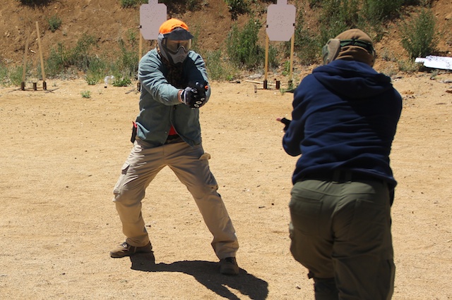 You MUST have a gas-operated airsoft pistol for this class. Electric or spring-operated guns are not suitable. A paintball mask/helmet, hooded sweatshirt and gloves are necessary.